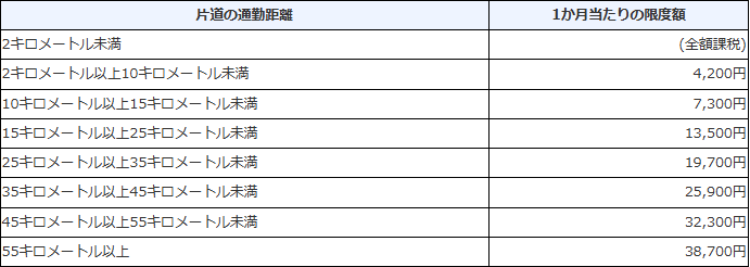 マイカーやバイク、自転車などで通勤している場合は、**「片道の通勤距離」**に応じて非課税枠が決まっています。